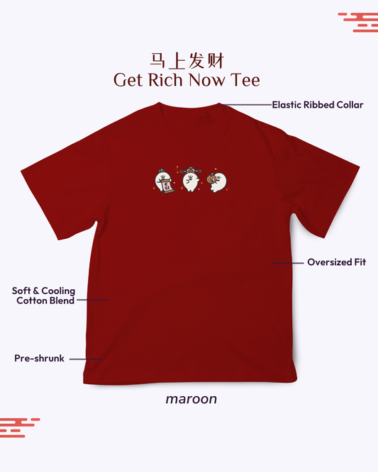 Get Rich Now (马上发财) Oversized Tee - Maroon